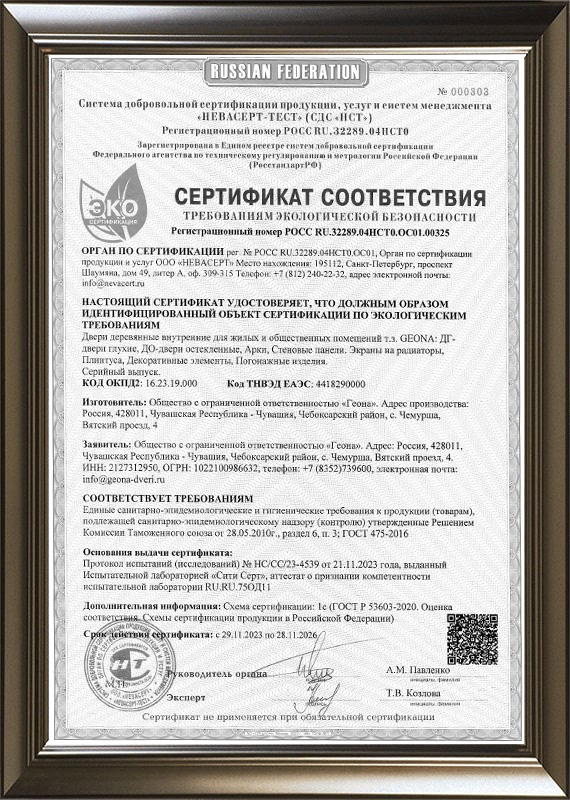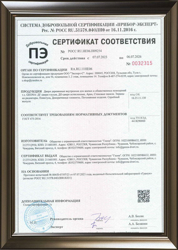 Сертификат ГОСТ на межкомнатные двери и арки